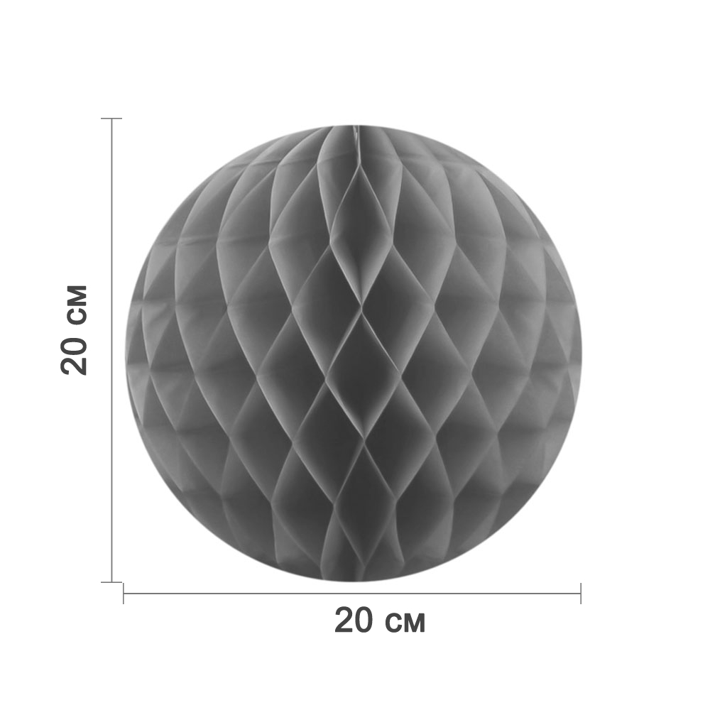 Бумажное украшение шар 20 см серый