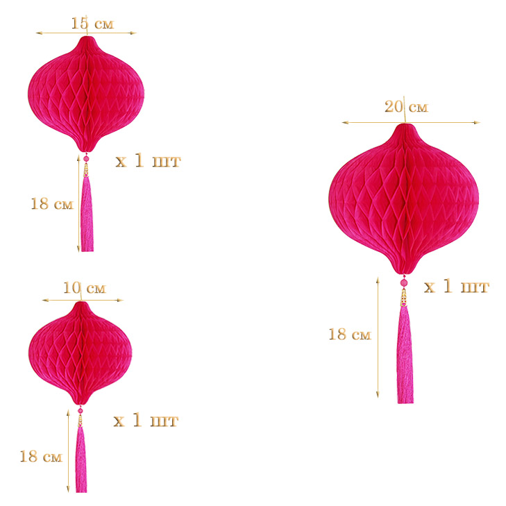 НАБОР бумажное украшение Шары-соты с кисточкой, малиновый - 3шт: