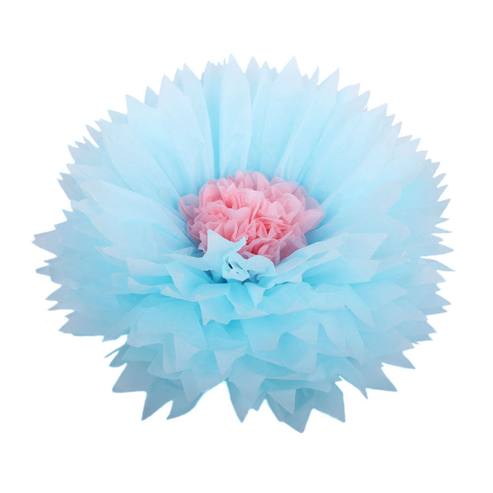 Бумажный цветок 40 см голубой+светло-розовый
