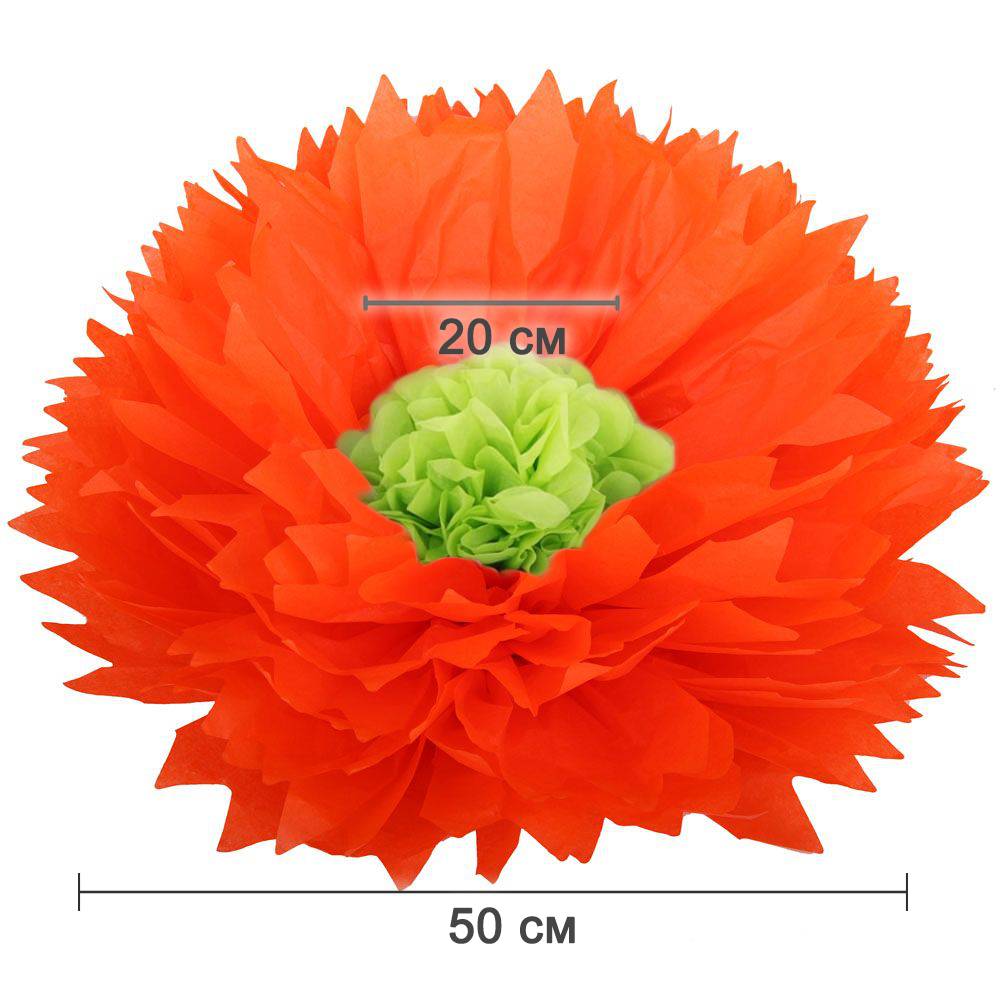 Бумажный цветок 50 см оранжевый+салатовый