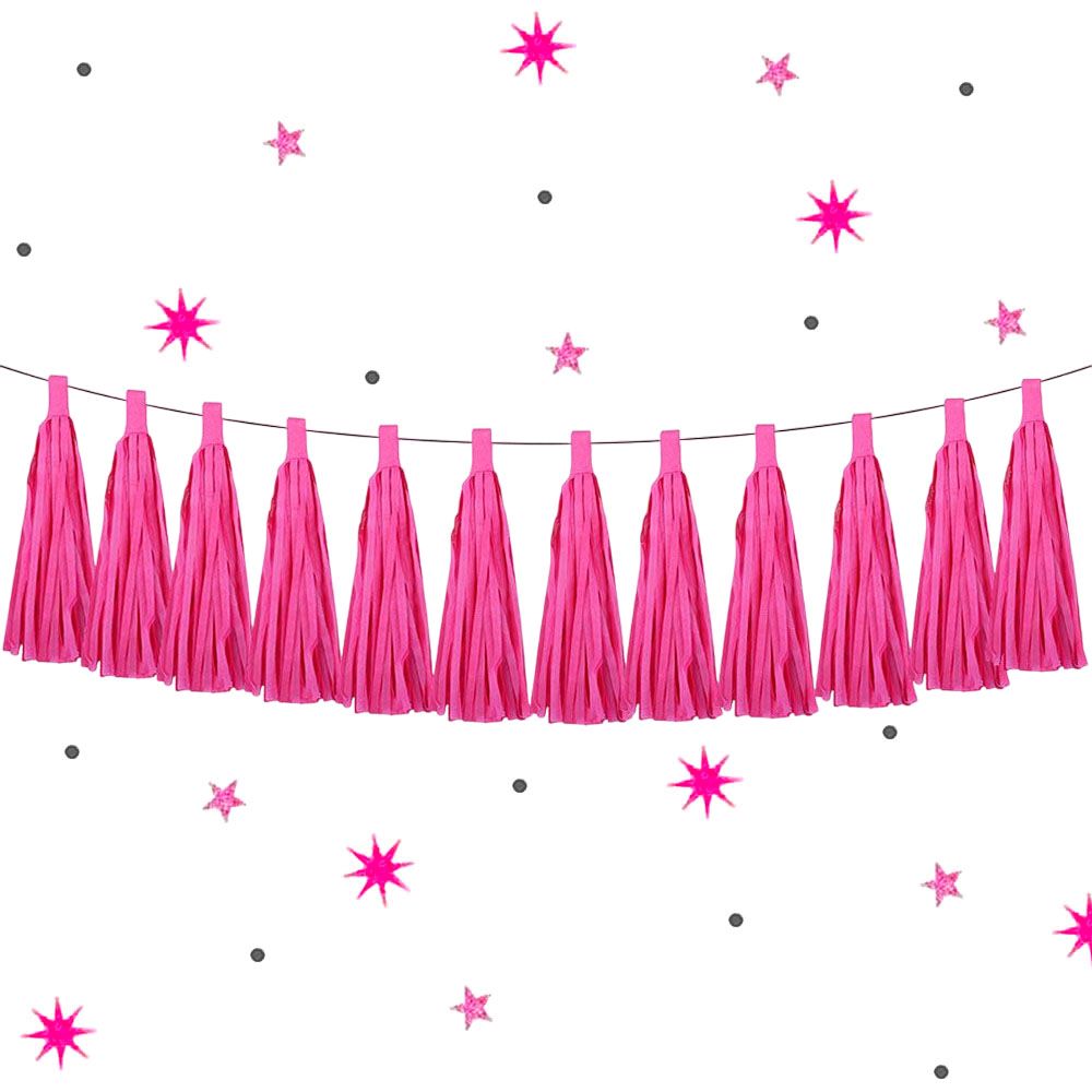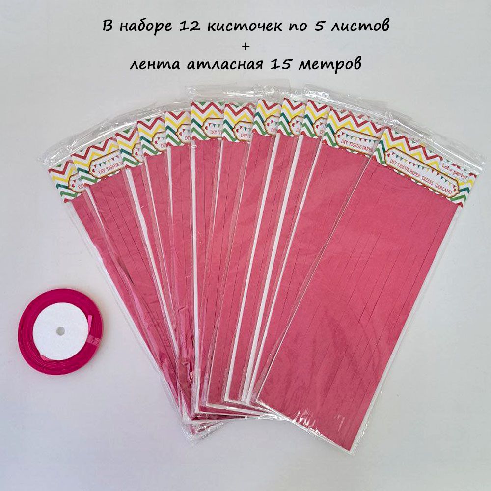 Гирлянда тассел 12 кисточек по 5 листов, амарантовый