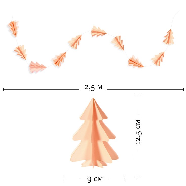 Гирлянда вертикальная "Елки" 2,5 м 12,5/9 см персик