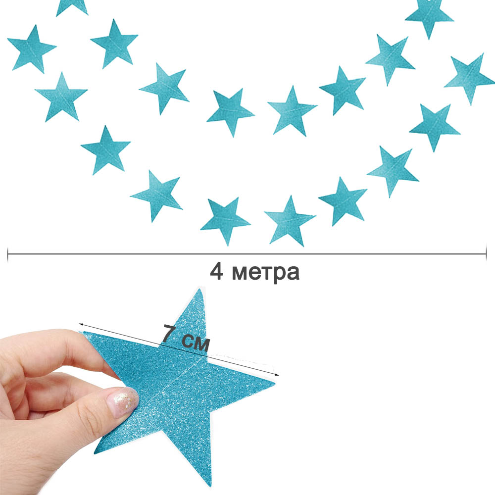 Гирлянда "Звезды" блеск 7 см х 4 м, голубой
