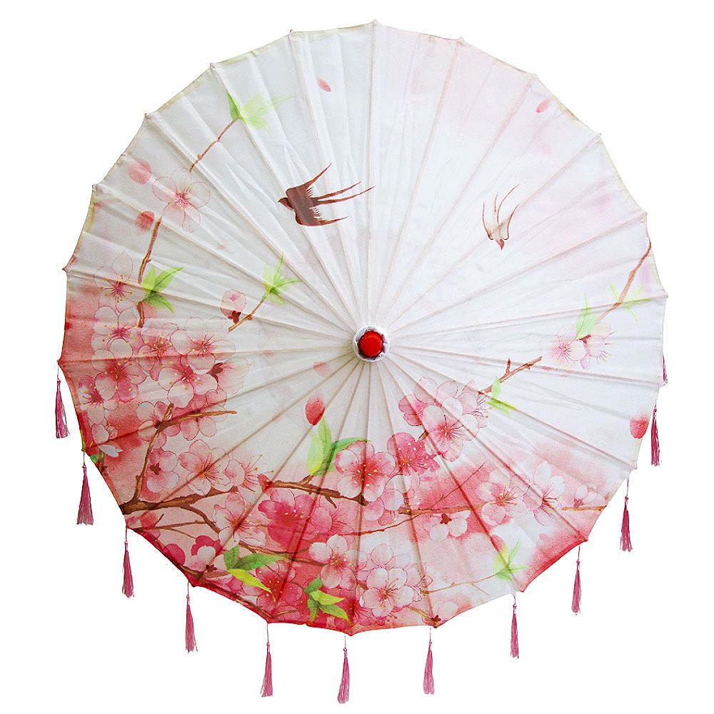 Китайские тканевые зонтики цветочные с кисточками 82х54 см