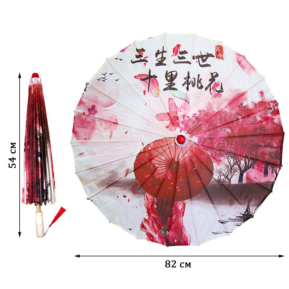 Китайский тканевый зонтик цветочный с кисточкой — эффектный аксессуар, в котором гармонично сочетаются практичность и изящество. Он подойдёт для прогулок по городу, путешествий и фотосъёмок, станет ярким элементом свадебных и праздничных образов, тематических мероприятий, фотозон и интерьерного декора. Такой зонт привлекает внимание в кадре и добавляет образу выразительности и утончённого шарма.