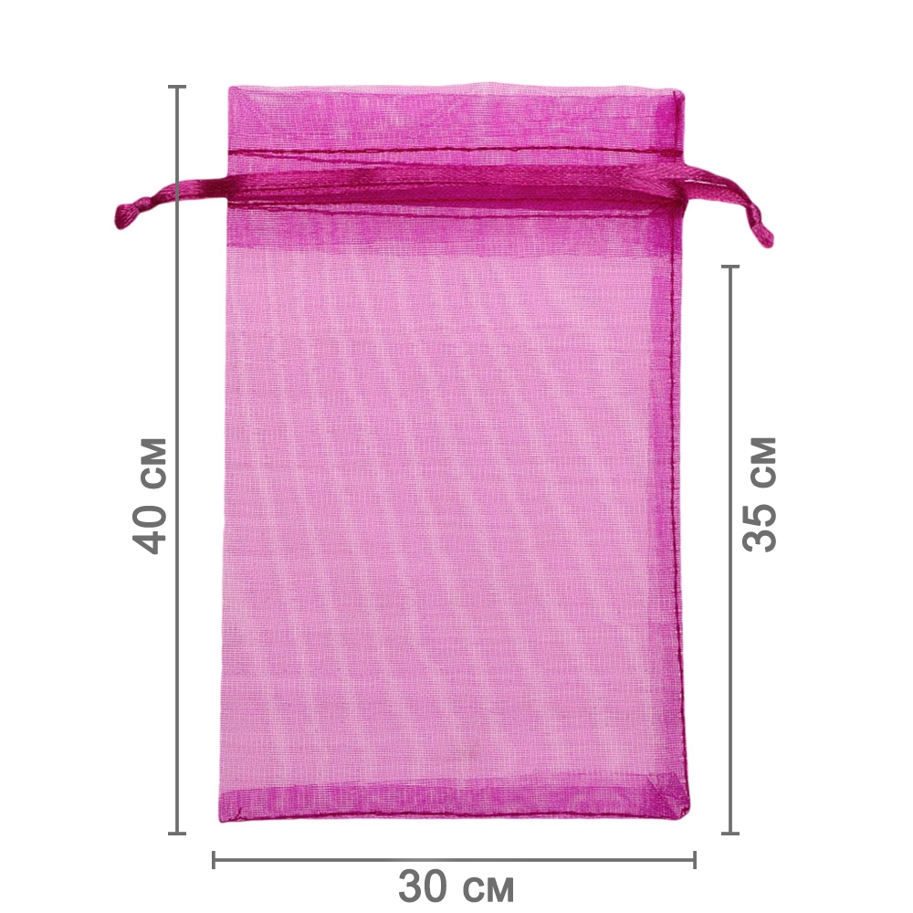 Мешочек из органзы 30 х 40 см — практичный аксессуар для упаковки крупных подарков и хранения предметов. Полупрозрачная ткань подчёркивает содержимое и придаёт праздничный вид.
