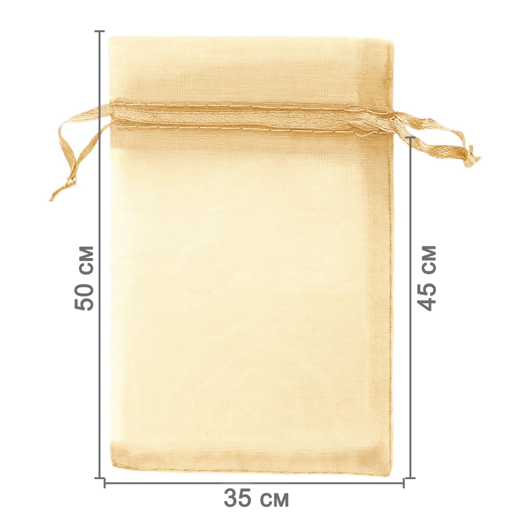 Мешочек из органзы 35 х 50 см — стильная и удобная упаковка для крупных подарков и хранения больших предметов. Лёгкая ткань подчёркивает содержимое и создаёт праздничный вид.
