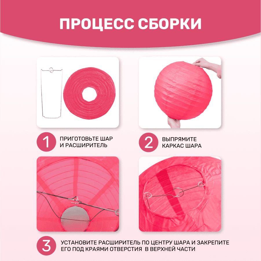 В комплект входит 8 бумажных фонариков и лента атласная.