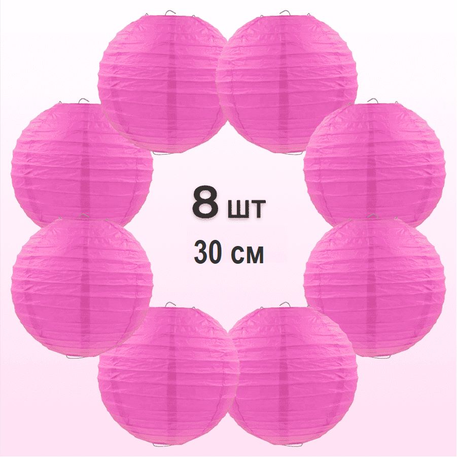 Комплект подвесные фонарики 30 см х 8 шт, малиновый
