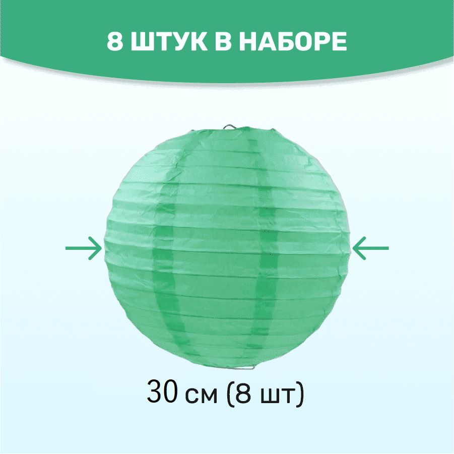 Комплект подвесные фонарики 30 см х 8 шт, мятный