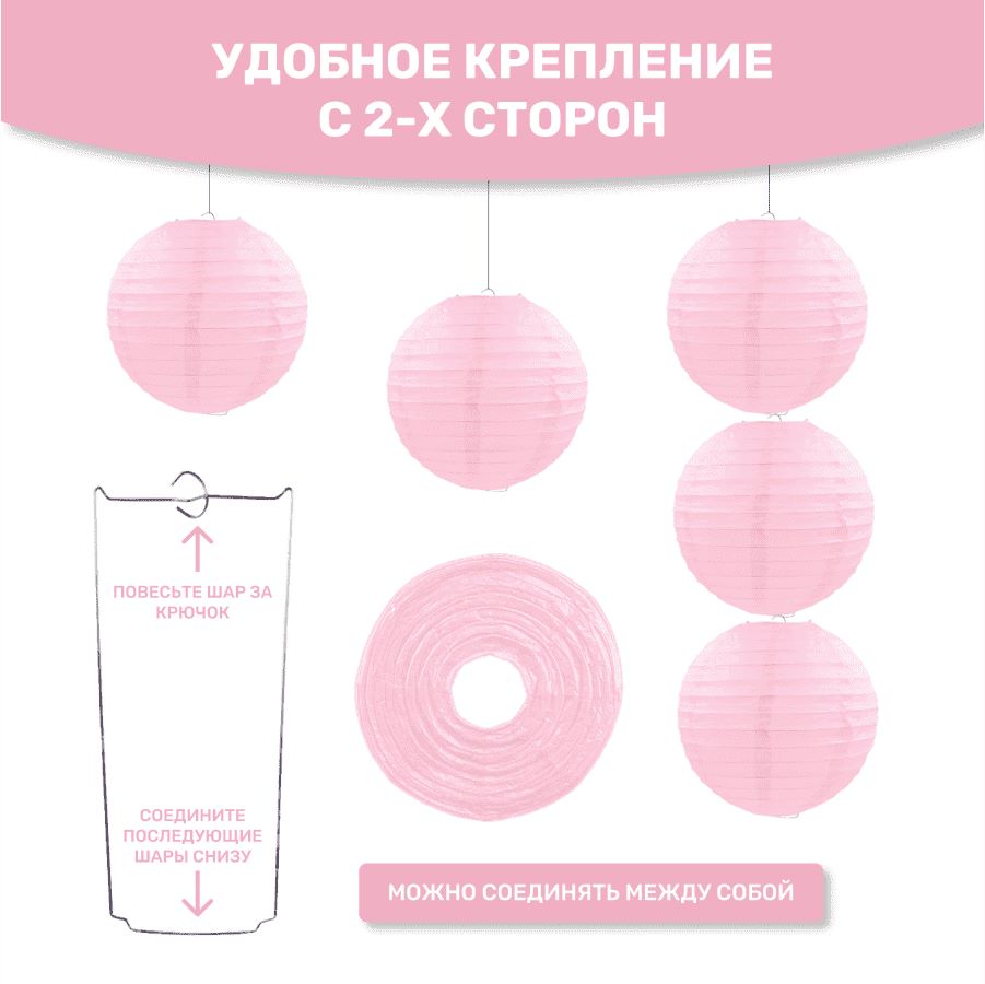 В комплект входит 8 бумажных фонариков и лента атласная.
