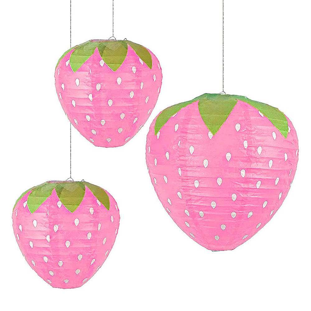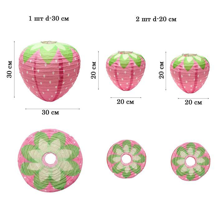 Набор подвесные фонарики "Клубнички" 3 шт 30х20х20см, розовый