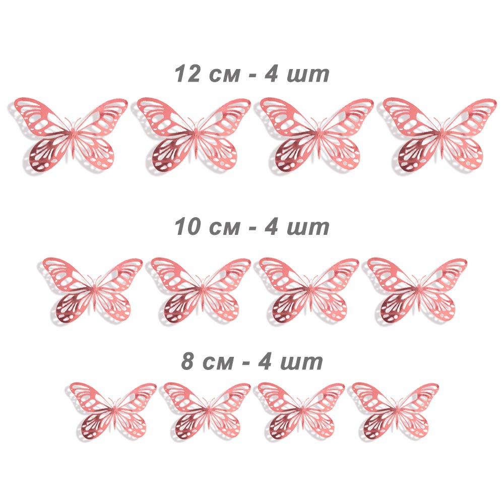 Наклейки Бабочки № 14 бумага металлик 12 шт розовое золото