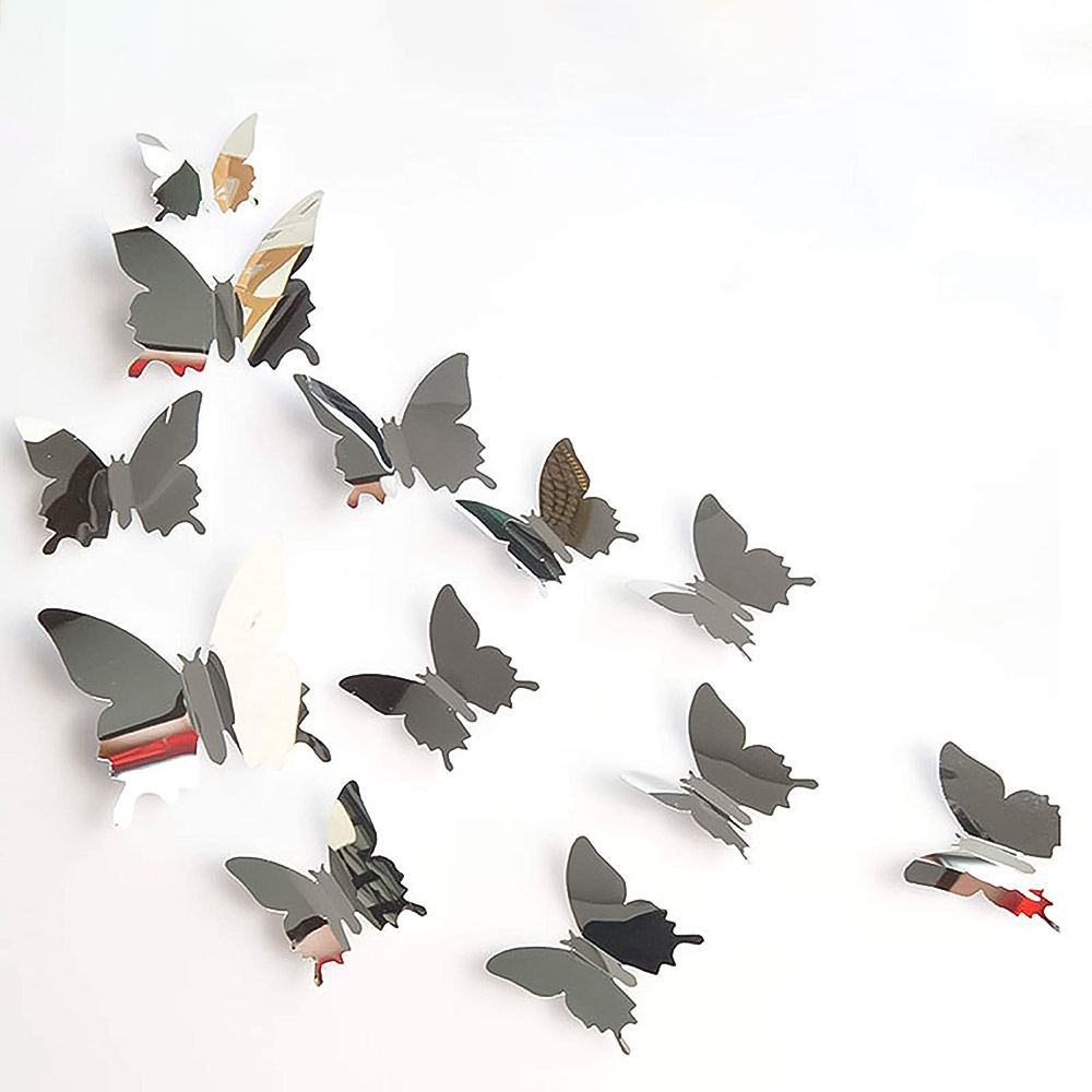 Пластиковые бабочки, двухцветные с внутреней стороны серебро, крепятся с помощью двухсторонней клейкой ленты, которая идет в комплекте.