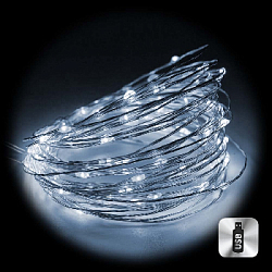 Нить "Роса" серебро, 2 м х 20 диодов, от батареек, желтый