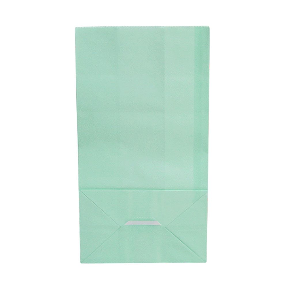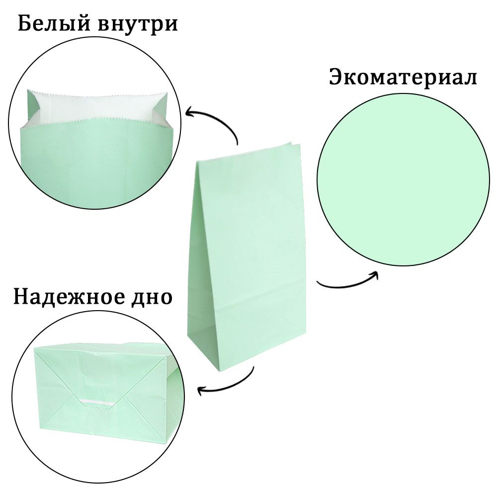 Подарочный пакет из крафтовой бумаги пастельного оттенка с белыми бумажными ручками и белой внутренней стороной.
