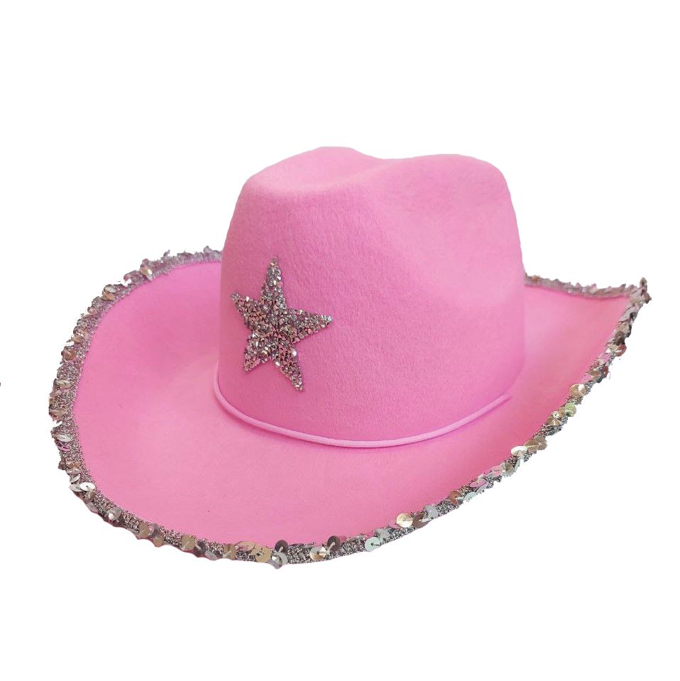 Шляпа ковбойская с блестками и звездой, розовый