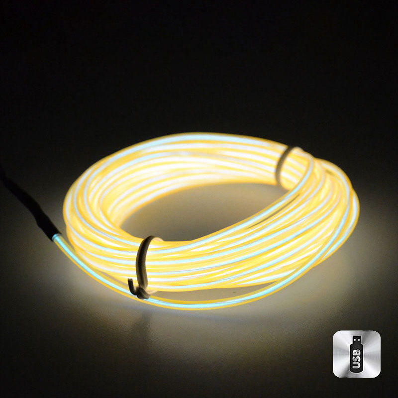 Шнур неоновый светящийся от USB 4 м, желтый