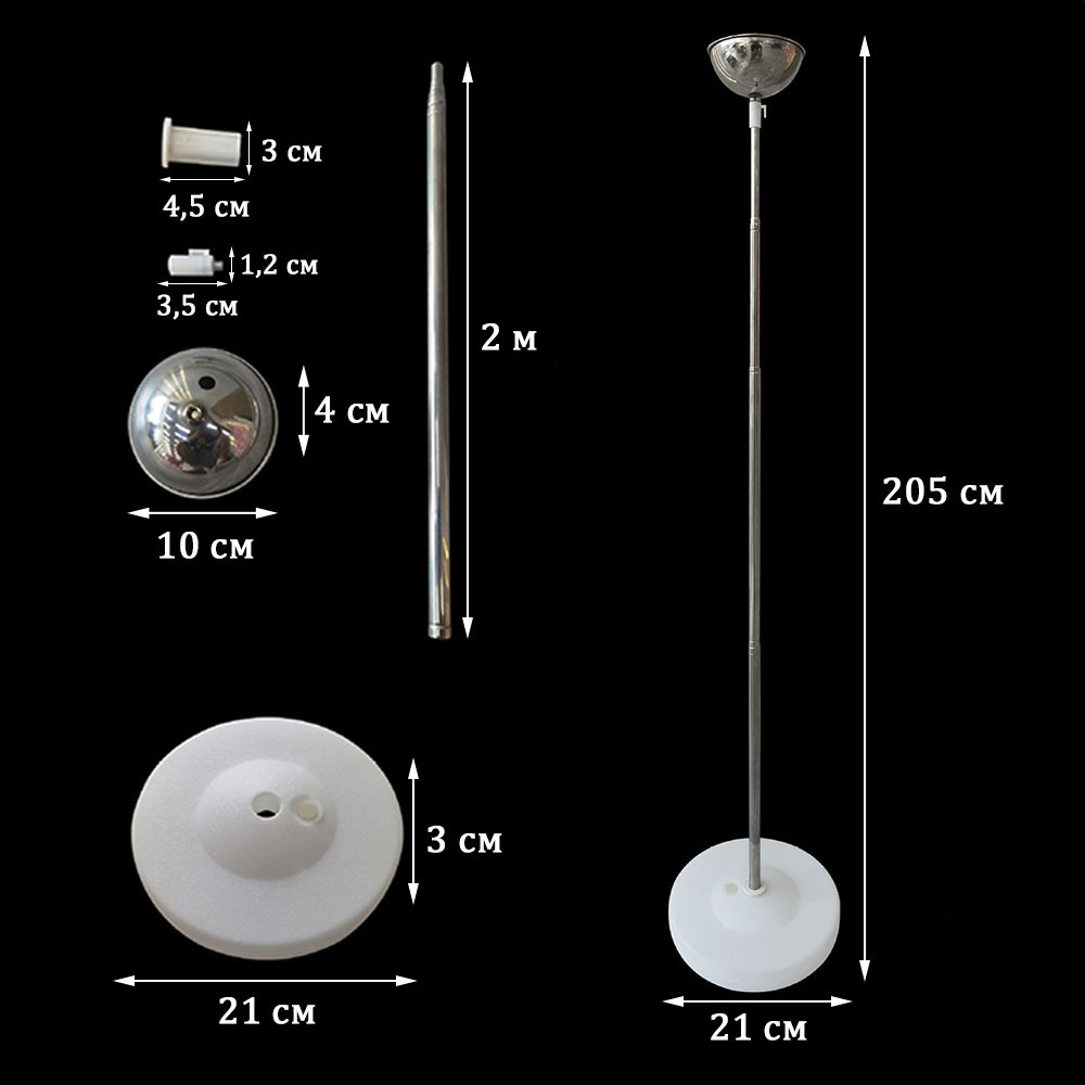 Телескопическая палка: стальная, выдвигается от 40 см до 2 м. Вставляется в основание через соединитель.