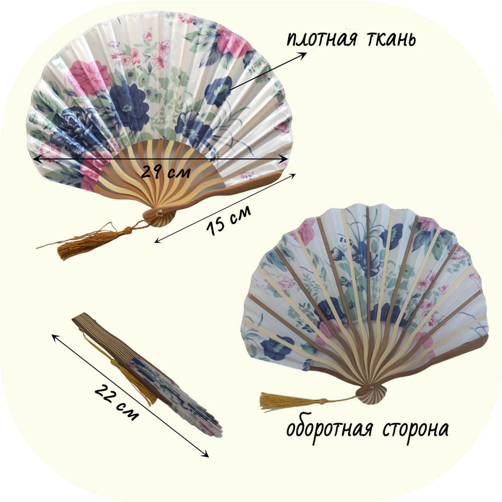 Веера тканевые с цветочным узором круглые 29х15см
