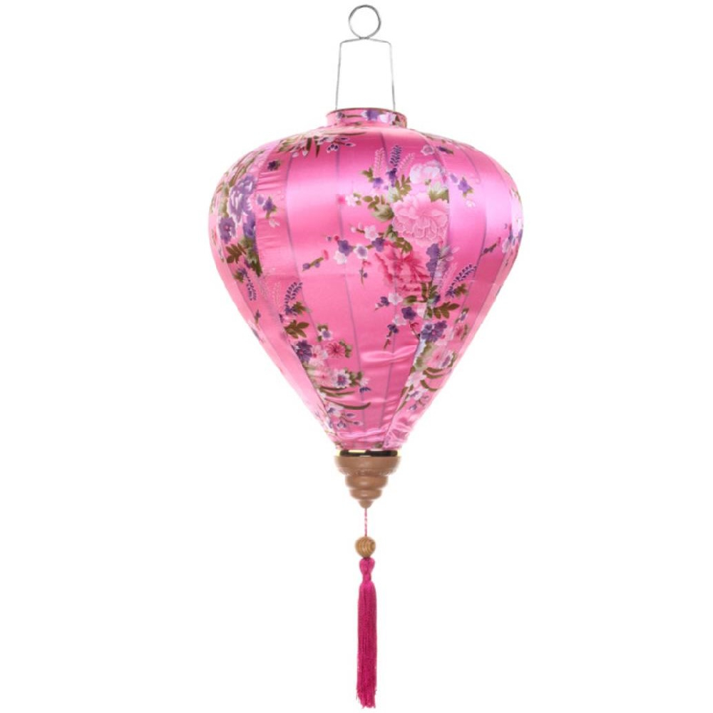 Это традиционные подвесные фонарики ручной работы, изготовленные из шелкового материала с элегантным цветочным узором, которые делают его изысканным и красивым.
